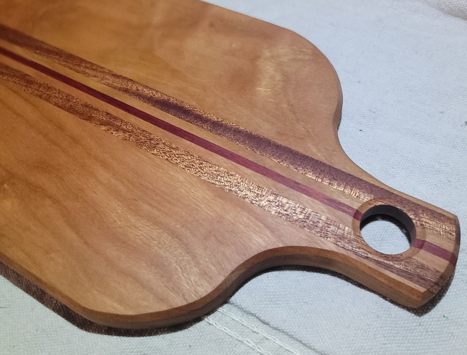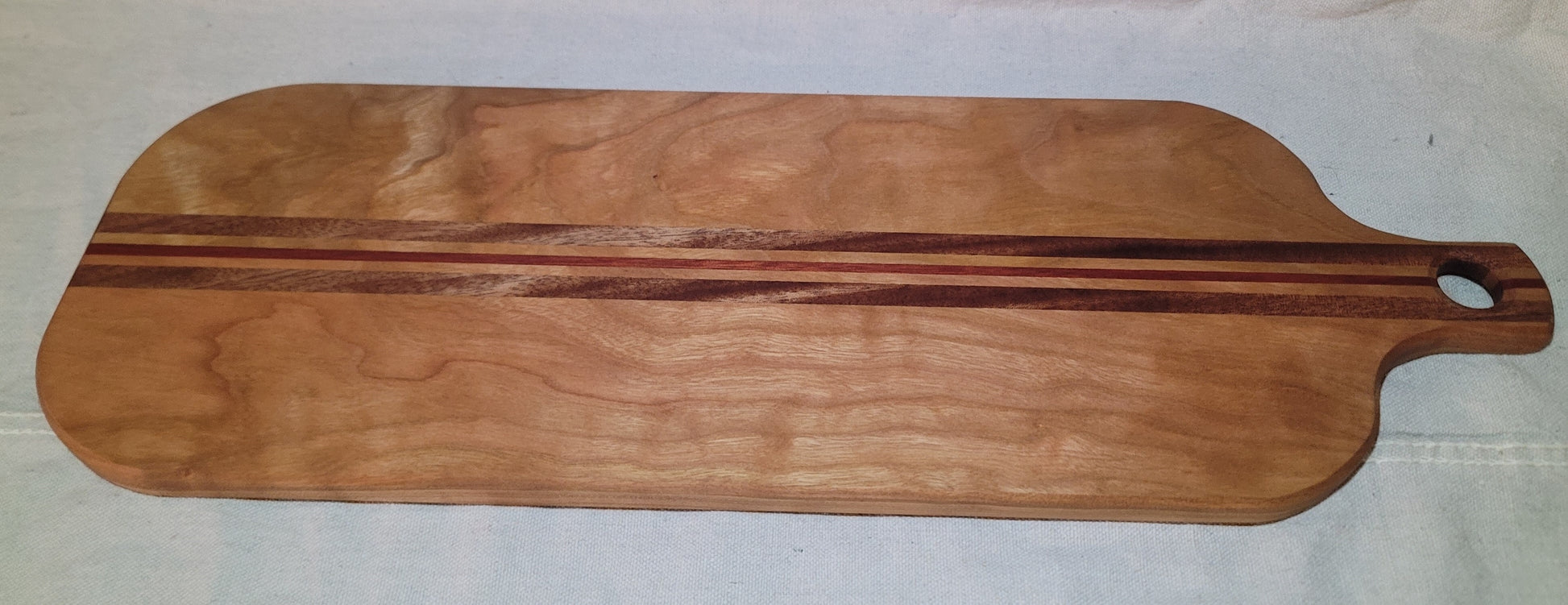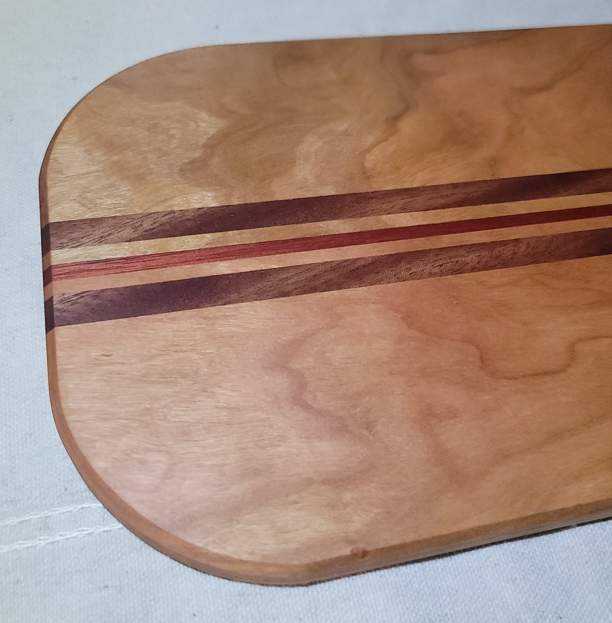 Cherry, Mahogany, and Blood Wood. Board size: 7 1/4" x 21" x 1/2"