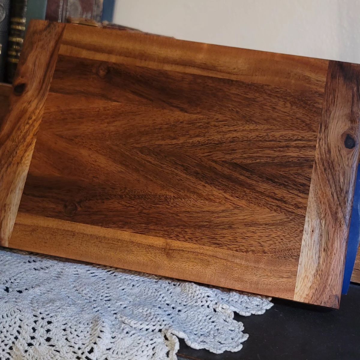 Solid Acacia wood trivet. Can also be used as a cheese cutting board.