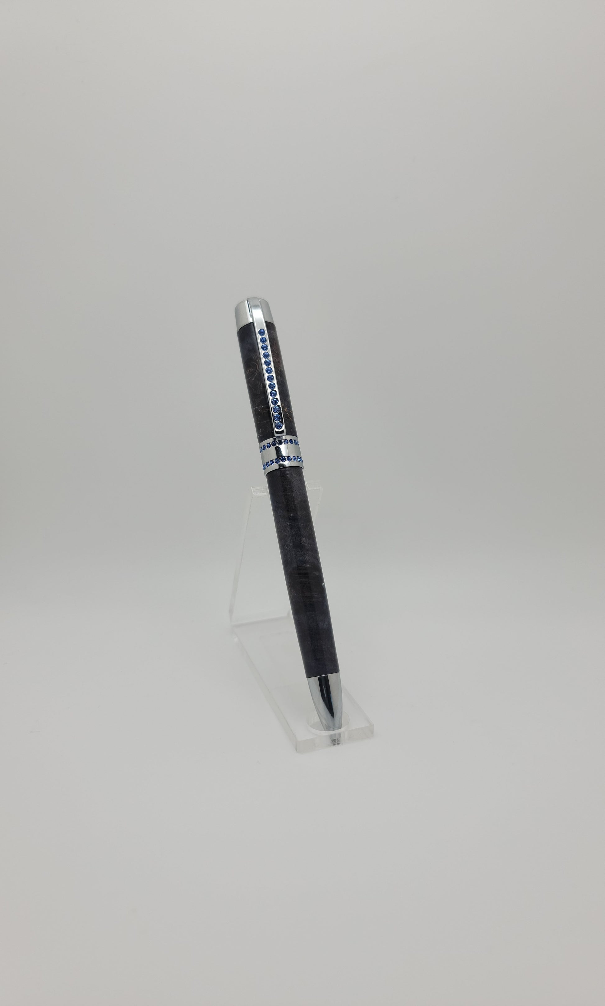Princess Twist Pen - Silver w/Blue Crystals - Blue Maple Burl Wood