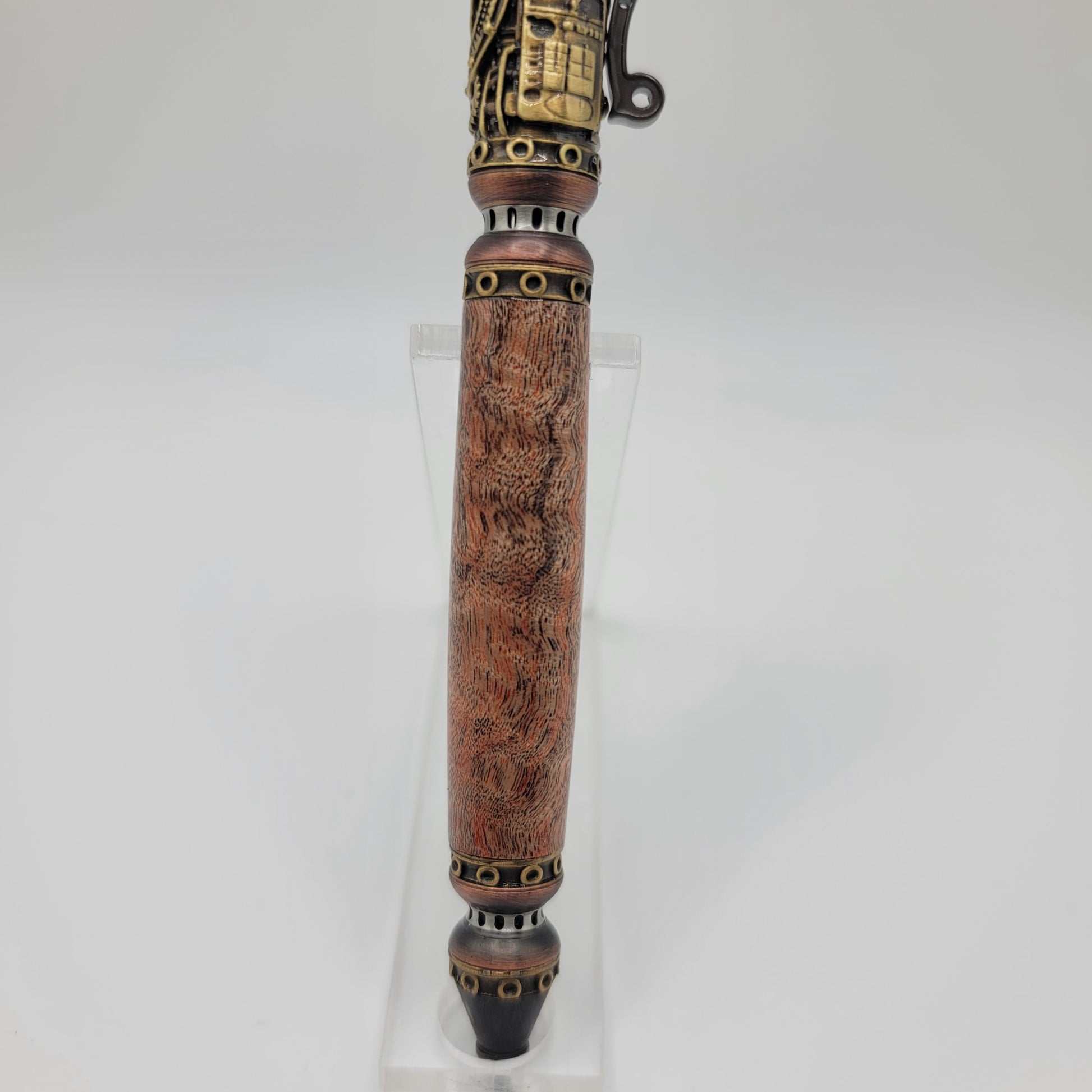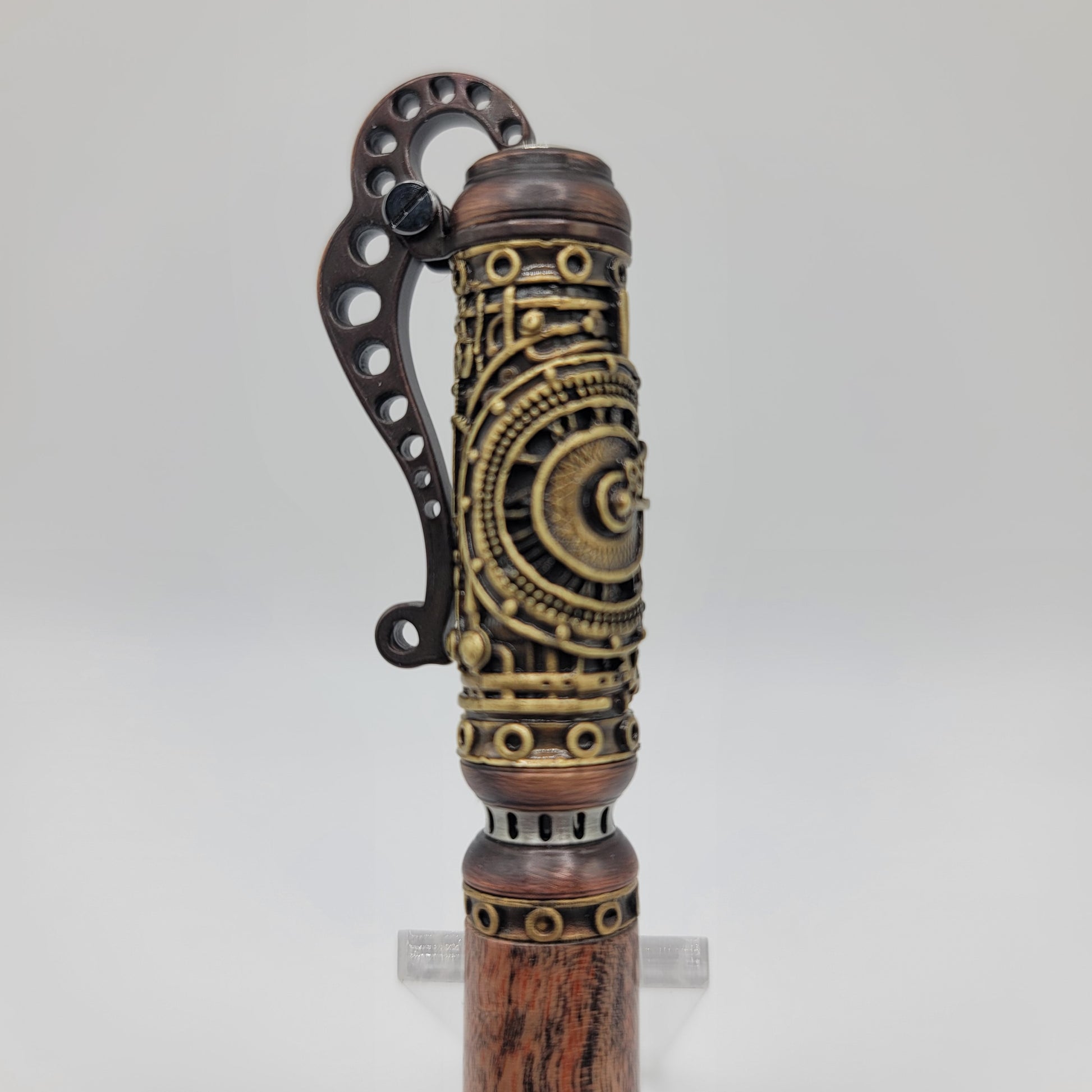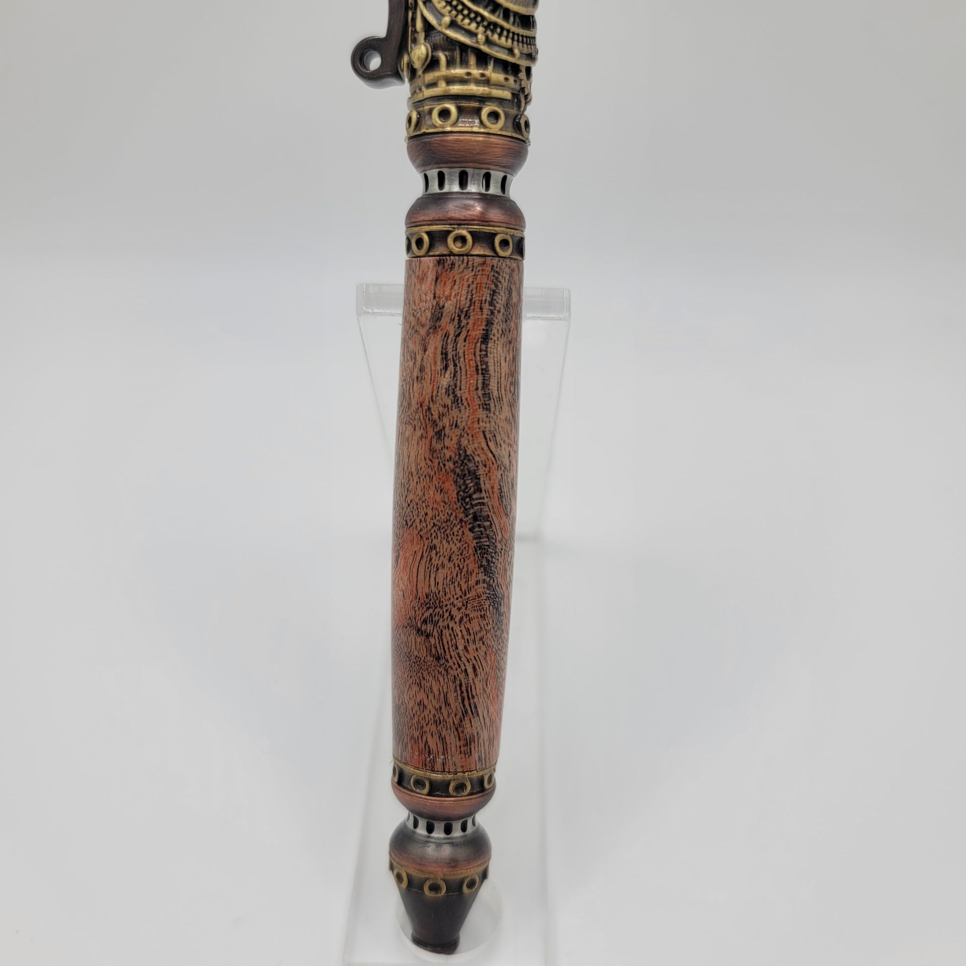 Steampunk Pen - Antique Brass/Oil Rubbed Bronze - Orange/Black Maple Burl Wood