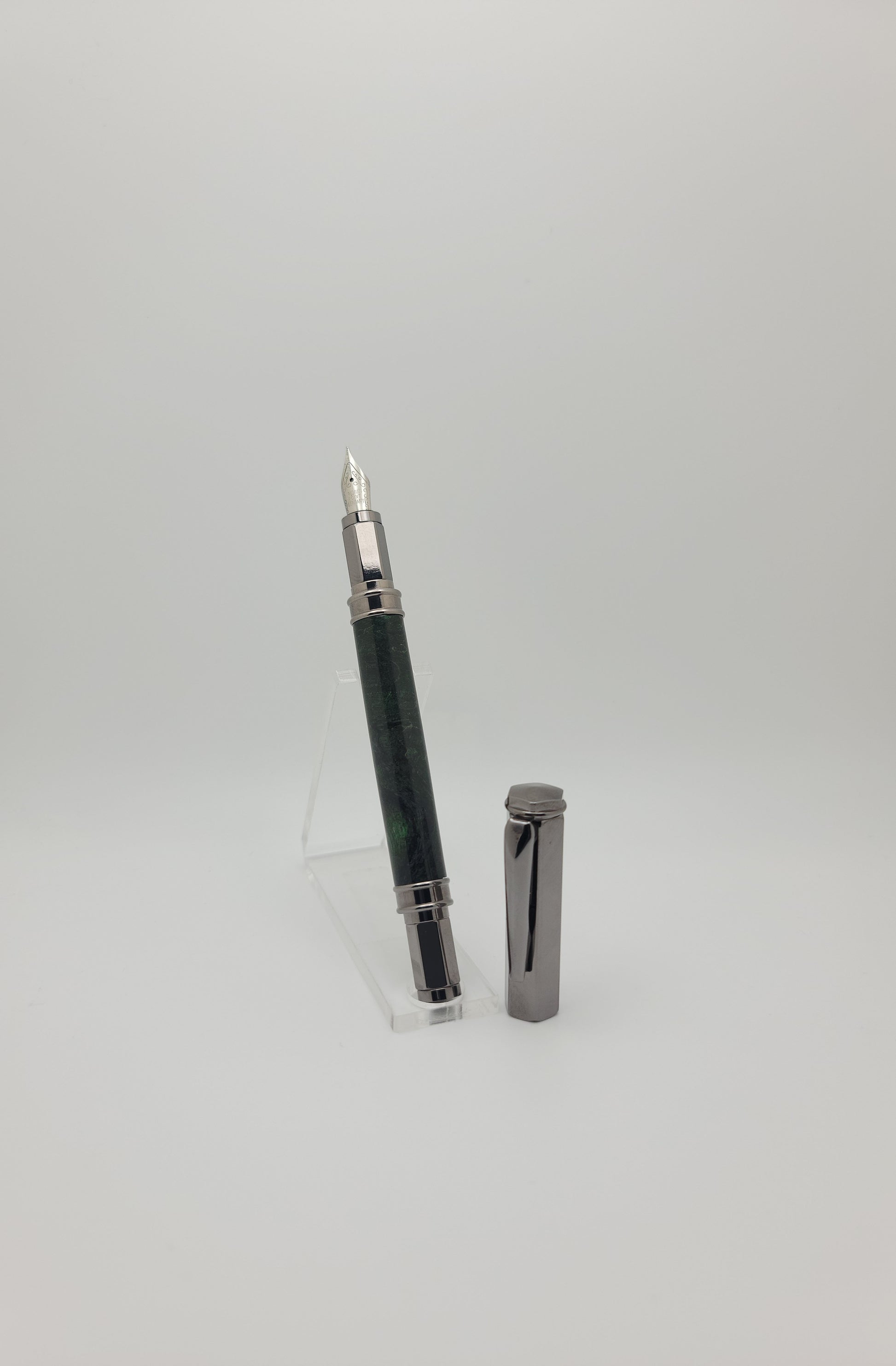 Magnetic Vertex Fountain Pen - Gun Metal - Lime/Black Maple Burl