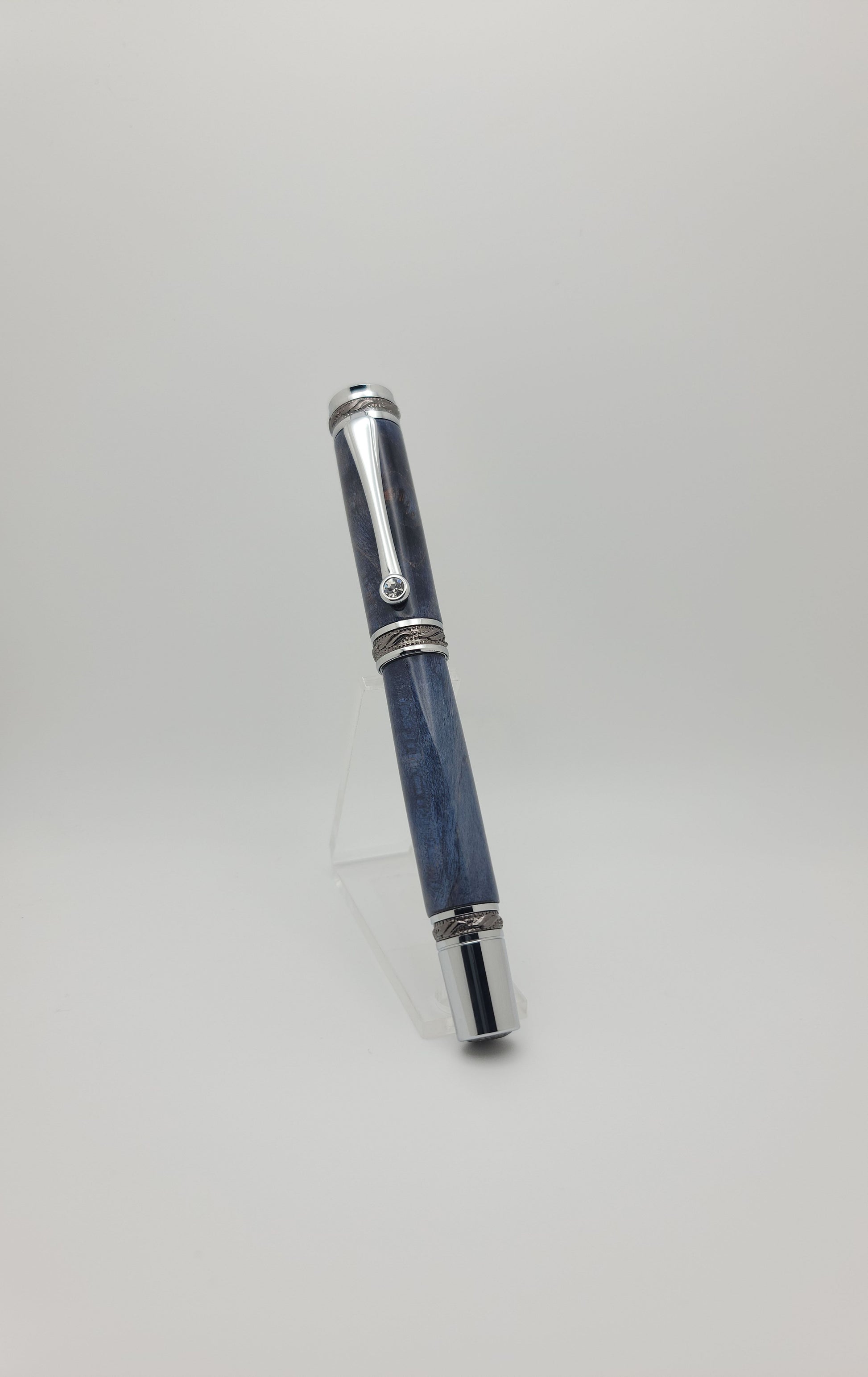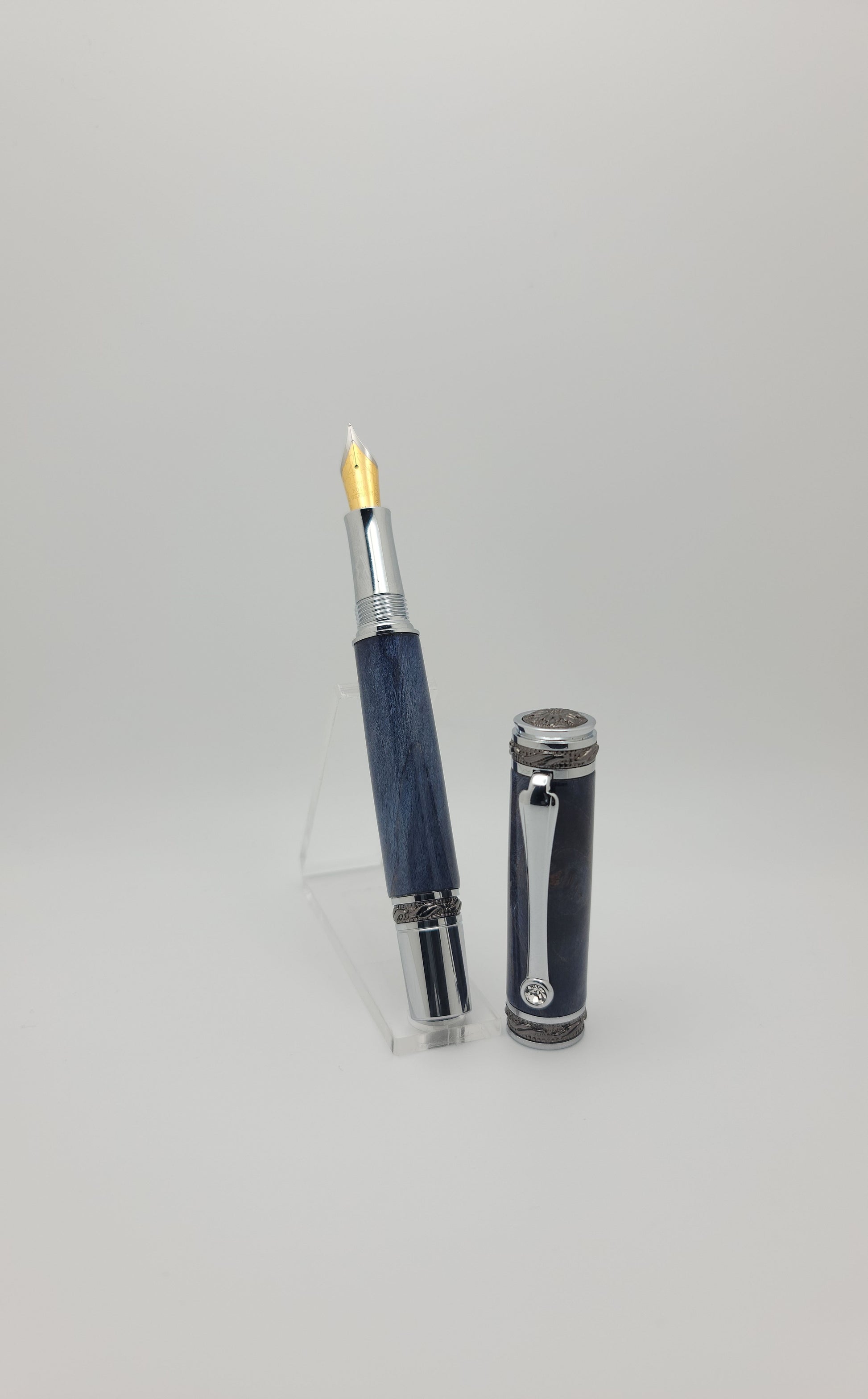 Majestic Fountain Pen - Gun Metal/Chrome - Stabilized Blue Maple Burl
